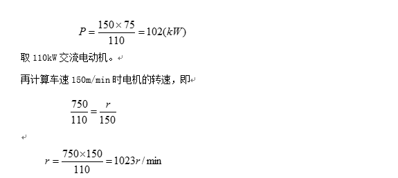 首先計算車(chē)速150m/min時(shí)所需電機的功率,考慮到紙機為恒轉矩負載,車(chē)速增高時(shí)電機功率按比例增加,于是: