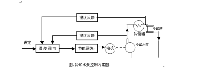 根據以上分析(以冷卻泵進(jìn)行分析說(shuō)明):由于冷卻塔的水溫是隨環(huán)境溫度而變的,其單側水溫度不能準確地反映冷凍機組內產(chǎn)生熱量的多少。所以,對于冷卻泵,以進(jìn)水和回水之間的溫差作為控制依據,來(lái)實(shí)現進(jìn)水和回水的恒溫差控制。