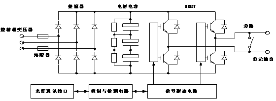 SBH系列高壓變頻器采取的拓撲結構方式為單元串聯(lián)型高壓變頻器,其為直接高-高變換電壓源型,變頻器基本原理如下圖2所示: